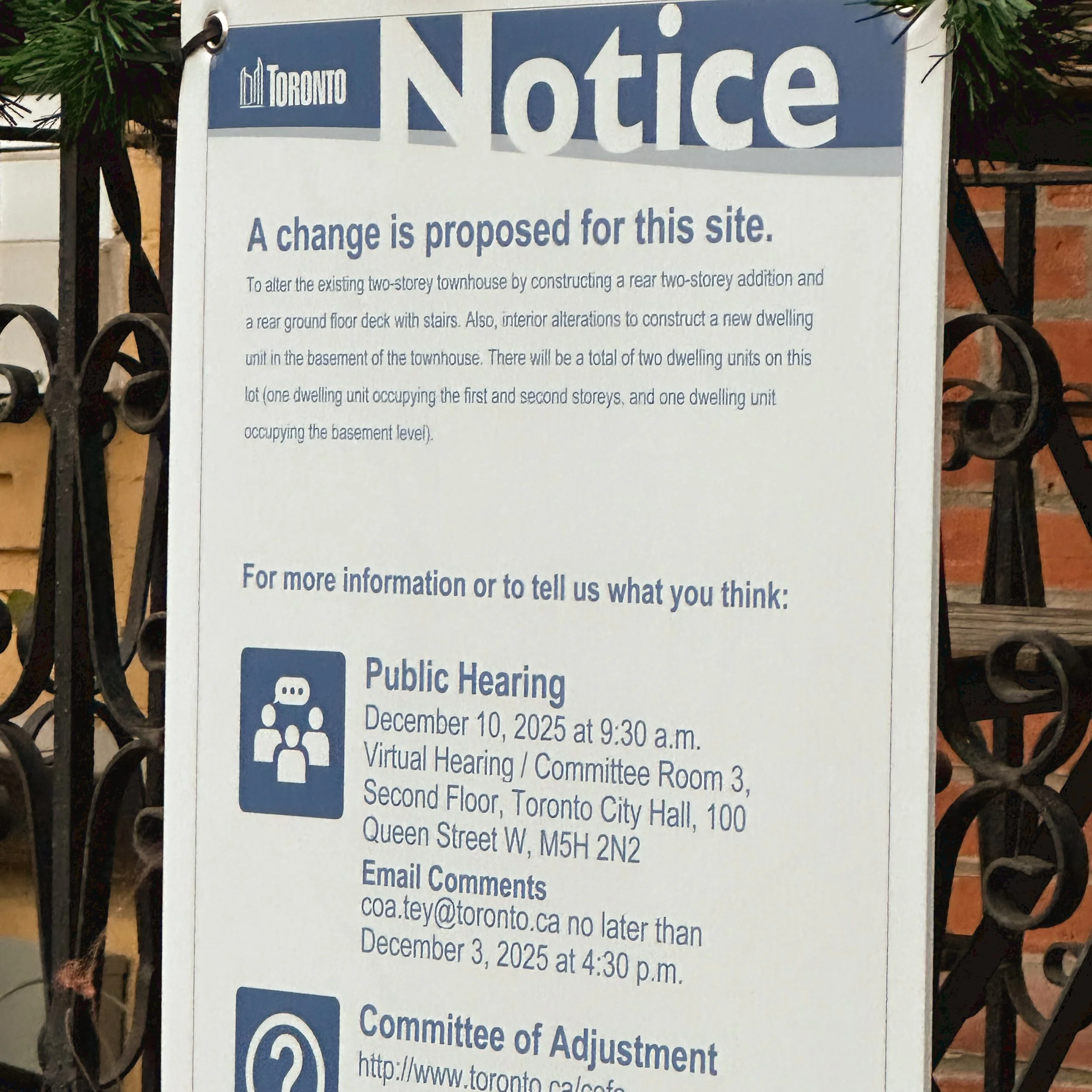 A posted sign announcing changes proposed to a site